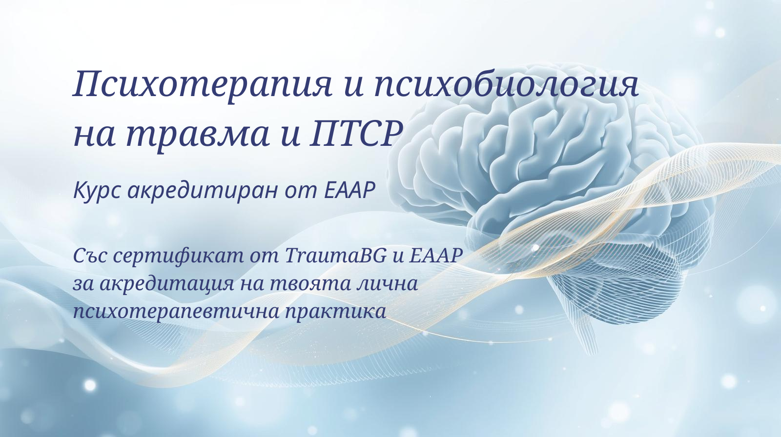 курс акредитиран от Европейската асоциация по приложна психология (ЕААР).Чрез него всеки студент или вече практикуващ психолог има възможност да придобие увереност и широк спектър от терапевтични инструменти за работа с психологическата травма и ПТСР.